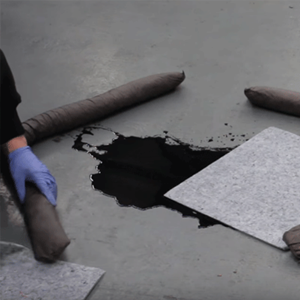 After encircling the oil spill with the socks soak up the excess oil with the absorbent pads.